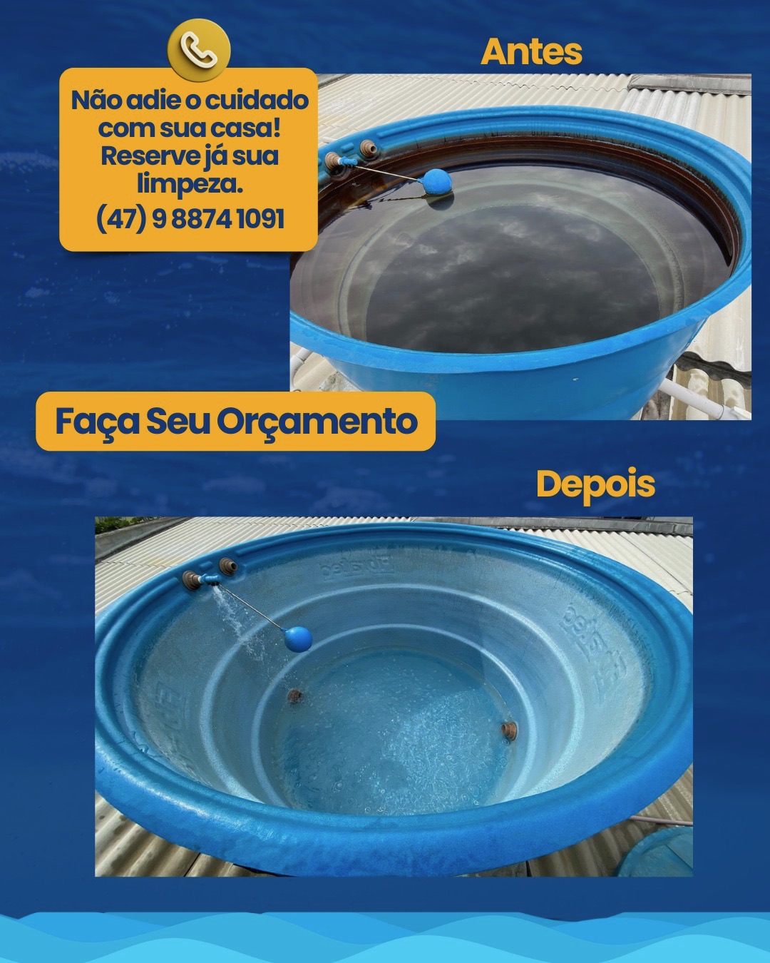 "Fizeram a limpeza das caixas d'água do prédio no Centro. Tudo técnico, com certificado e organização."